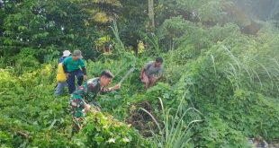 Parit Penuh Sampah Dibersihkan Warga dan Babinsa di Kamanre
