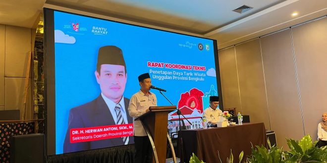 Penjabat Sekretaris Daerah (Pj Sekda) Provinsi Bengkulu, Herwan Antoni, menyampaikan hal tersebut saat membuka Rapat Koordinasi Teknis (Rakornis) pembahasan rencana penetapan daya tarik wisata Provinsi Bengkulu di Hotel Two K Azana.