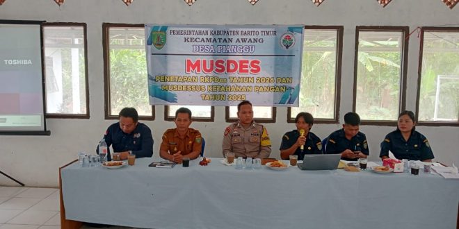 BARITO TIMUR DESA NUSANTARA Desa Pianggu, Kecamatan Awang, Kabupaten Barito Timur, Provinsi Kalimantan Tengah, melaksanakan Musyawarah Desa (Musdes) yang menjadi forum penting bagi warga dan pemangku kepentingan desa. Agenda utama kegiatan ini adalah membahas, menetapkan, dan mengesahkan Rencana Kerja Pemerintah Desa (RKPDes) tahun 2026 serta Program Ketahanan Pangan tahun 2025.