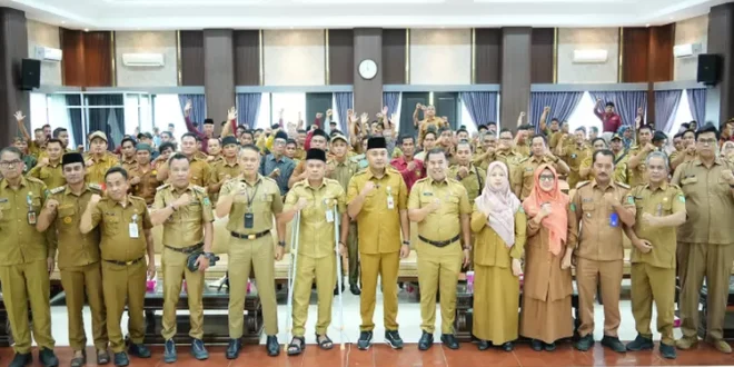 Dalam arahannya, Bupati Agus Rubiyanto menegaskan bahwa Kabupaten Tebo mengalami penurunan anggaran yang signifikan pada tahun 2026.