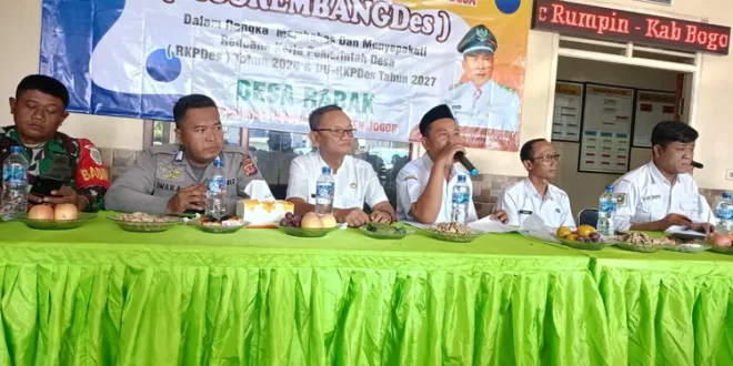 BOGOR DESA NUSANTARA Pemerintah Desa Rabak, Kecamatan Rumpin, Kabupaten Bogor, menggelar Musyawarah Pembangunan Desa (Musrenbangdes) di Aula Kantor Desa Rabak. Forum ini menjadi ruang resmi bagi masyarakat untuk menyampaikan aspirasi sekaligus membahas Rencana Kerja Pemerintah Desa (RKPDes) tahun 2026.