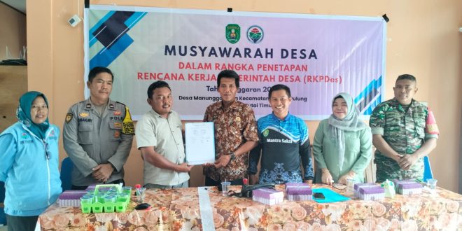 RANTAU PULUNG DESA NUSANTARA Dalam upaya memperkuat sinergi antara pemerintah desa dan aparat keamanan, Bhabinkamtibmas Desa Manunggal Jaya, AIPDA Roman Martison Hutasoit, menghadiri kegiatan Musyawarah Desa (Musdes) Penetapan Rencana Kerja Pemerintah Desa (RKPDes) Tahun 2026 yang digelar di Kantor Desa Manunggal Jaya, Kecamatan Rantau Pulung, Kabupaten Kutai Timur, pada Jumat (10/10/2025) pukul 09.00 WITA.