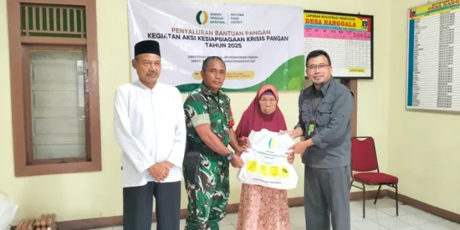 PANDEGLANG DESA NUSANTARA Kodim 0601/Pandeglang melalui Koramil 0116/Cikeusik menyalurkan bantuan pangan kepada masyarakat Desa Nanggala, Kecamatan Cikeusik, Kabupaten Pandeglang, Provinsi Banten, Jum’at (24/10/2025). Kegiatan ini digelar di Kantor Desa Nanggala dan dihadiri Kepala Desa Nanggala, Sumarna, beserta perangkat desa dan tokoh masyarakat setempat.