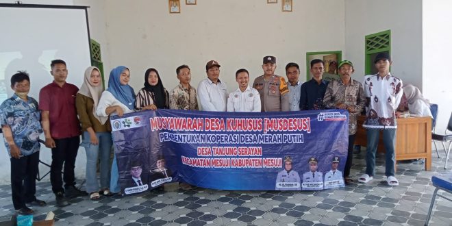 MESUJI DESA NUSANTARA Dalam upaya mendukung program pemerintah pusat di bidang pemberdayaan ekonomi desa, Bhabinkamtibmas Polsubsektor Mesuji Pusat menghadiri kegiatan Musyawarah Desa Khusus (Musdessus)Â yang diselenggarakan di Balai Desa Tanjung Serayan, Kecamatan Mesuji, Kabupaten Mesuji.