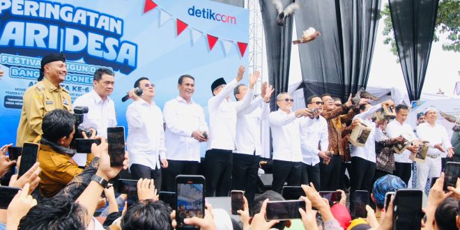 SUBANG DESA NUSANTARA Penjabat Bupati Subang, Dr. Drs. Imran, M.Si., MA.Cd., menghadiri peringatan Hari Desa dan Festival Bangun Desa Bangun Indonesia yang diinisiasi oleh Kementerian Desa dan Pembangunan Daerah Tertinggal Republik Indonesia (Kemendes PDTT). Kegiatan ini digelar di Lapangan Dusun Cerelek, Desa Cisaat, Kabupaten Subang, dan dihadiri oleh Asosiasi Pemerintah Desa Seluruh Indonesia (APDESI) serta sejumlah menteri Republik Indonesia, Selasa (14/01/2025).