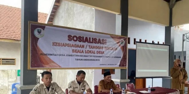 JOMBANG DESA NUSANTARA Pemerintah Desa (Pemdes) Jombatan, Kecamatan Kesamben, Kabupaten Jombang, mengambil langkah proaktif dalam meningkatkan kesiapsiagaan masyarakat terhadap potensi bencana alam. Bersinergi dengan Badan Penanggulangan Bencana Daerah (BPBD) Jombang, Pemdes menggelar kegiatan sosialisasi tanggap bencana skala desa yang berlangsung di Balai Desa Jombatan.