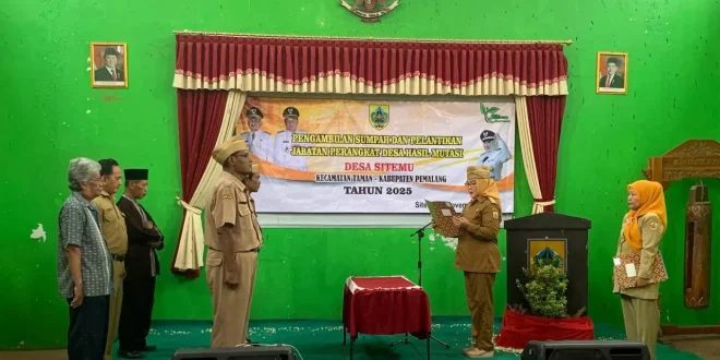 PEMALANG DESA NUSANTARA Pemerintah Desa Sitemu, Kecamatan Taman, Kabupaten Pemalang, melaksanakan pelantikan perangkat desa hasil mutasi jabatan di aula Balai Desa pada Selasa (04/11/2025). Kegiatan tersebut dipimpin langsung oleh Kepala Desa Sitemu, Musiyam, dan dihadiri oleh jajaran perangkat desa, Ketua BPD, tokoh masyarakat, serta perwakilan dari Kecamatan Taman.