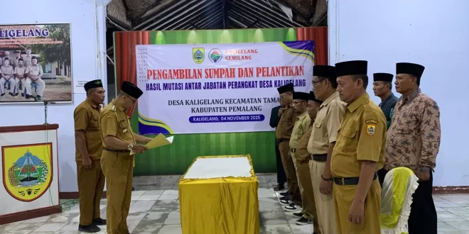 PEMALANG DESA NUSANTARA Suasana malam di Balai Desa Kaligelang, Kecamatan Taman, Kabupaten Pemalang, terasa khidmat ketika enam perangkat desa baru resmi dilantik pada pukul 20.00 WIB. Momen ini menjadi tonggak penting dalam perjalanan tata kelola pemerintahan Desa Kaligelang yang berkomitmen memperkuat pelayanan publik dan transparansi pemerintahan.
