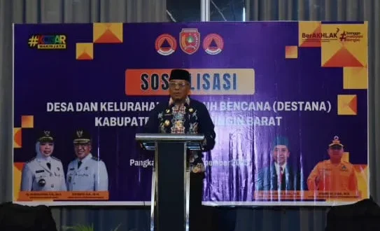 KOTAWARINGIN BARAT DESA NUSANTARA Pemerintah Kabupaten Kotawaringin Barat (Pemkab Kobar) terus memperkuat kesiapsiagaan daerah dalam menghadapi potensi bencana melalui kegiatan Sosialisasi Desa dan Kelurahan Tangguh Bencana (DESTANA) Tahun 2025. Kegiatan ini resmi dibuka oleh Wakil Bupati Kotawaringin Barat, Suyanto, S.H., M.H., di Hotel Mercure Pangkalan Bun.