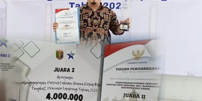 WAY KANAN DESA NUSANTARA Perpustakaan Pustaka Kencana yang berada di Kampung Umpu Kencana, Kecamatan Blambangan Umpu, Kabupaten Way Kanan, berhasil meraih Juara II Perpustakaan Desa Terbaik Tingkat Provinsi Lampung Tahun 2025. Prestasi ini diraih sebagai bentuk pengakuan atas komitmen perpustakaan desa dalam mendorong peningkatan budaya literasi di tengah masyarakat.