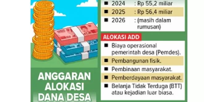 KOTA BATU DESA NUSANTARA Pemerintah Kota (Pemkot) Batu memastikan akan melakukan penyesuaian anggaran desa pada tahun 2026 menyusul adanya pengurangan dana transfer ke daerah (TKD) dari pemerintah pusat yang mencapai Rp 168,8 miliar. Dampaknya, selain Dana Desa (DD), Alokasi Dana Desa (ADD) juga diproyeksikan mengalami penurunan.