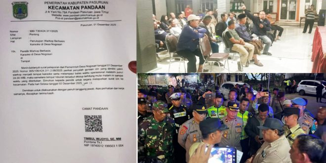 PANDAAN DESA NUSANTARA Puluhan warga Desa Nogosari, Kecamatan Pandaan, Kabupaten Pasuruan, berbondong-bondong mendatangi Balai Desa Nogosari pada Senin malam (01/12/2025). Kedatangan mereka didorong oleh kekecewaan sekaligus tuntutan agar pemerintah desa menindaklanjuti hasil Rapat Koordinasi dan Evaluasi Pengelolaan Usaha Warkop Karaoke yang telah digelar sebelumnya, yakni pada Rabu (12/11/2025).