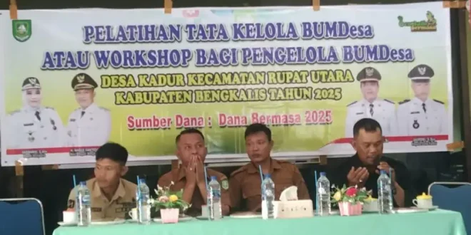 BENGKALIS, DESA – NUSANTARA: Pemerintah Desa Kadur, Kecamatan Rupat Utara, menggelar Pelatihan Tata Kelola Badan Usaha Milik Desa (BUMDesa) sebagai langkah strategis untuk meningkatkan kualitas manajemen usaha desa. Kegiatan yang dipusatkan di Balai Desa Kadur ini dipimpin langsung oleh Kepala Desa Kadur, Jaironi, S.Sos, serta mendapat perhatian luas dari berbagai unsur masyarakat.