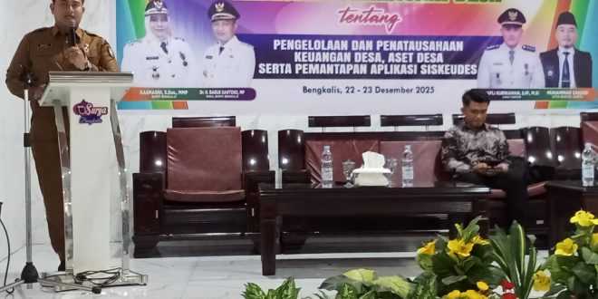 BENGKALIS, DESA – NUSANTARA: Badan Kerja Sama Antar Desa (BKAD) Kecamatan Bantan menggelar pelatihan peningkatan kapasitas perangkat desa dengan tema “Pengelolaan dan Penatausahaan Keuangan Desa, Aset Desa serta Pemantapan Aplikasi SISKEUDES”. Kegiatan ini berlangsung selama dua hari, sejak 22 hingga 23 Desember 2025, bertempat di Aula Hotel Surya Bengkalis.