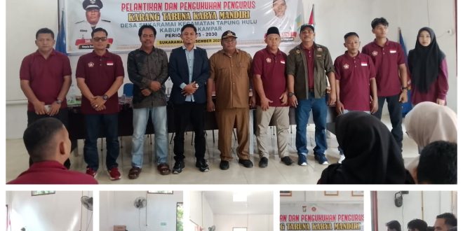 KAMPAR, DESA – NUSANTARA: Negara kembali menegaskan keberpihakannya kepada kekuatan pemuda desa melalui Pelantikan dan Pengukuhan Pengurus Karang Taruna Karya Mandiri Desa Sukaramai Periode 2025–2030. Kegiatan tersebut digelar di Aula Kantor Desa Sukaramai, Kecamatan Tapung Hulu, Kabupaten Kampar.