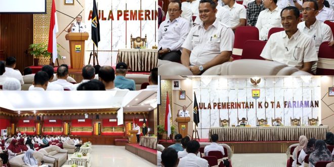 PARIAMAN, DESA – NUSANTARA: Wali Kota Pariaman Yota Balad membuka Rapat Koordinasi (Rakor) Kepala Desa yang digelar di Aula Balaikota Pariaman, Rabu (24/12/2025). Rakor tersebut mengusung tema “Penyelarasan Kebijakan Pembangunan Daerah dan Desa Untuk Percepatan Kesejahteraan Masyarakat”.