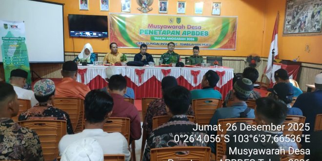 SUNGAI, INTAN DESA – NUSANTARA: Anggaran Pendapatan dan Belanja Desa (APBDes) Tahun Anggaran 2026 resmi ditetapkan melalui Musyawarah Desa yang digelar di Aula Pertemuan Desa Sungai Intan, Kecamatan Tembilahan Hulu. Penetapan ini menjadi dasar perencanaan dan pelaksanaan pembangunan desa pada tahun anggaran mendatang.