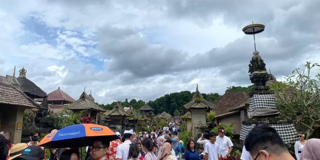 BANGLI, DESA – NUSANTARA: Aktivitas pariwisata di Desa Wisata Penglipuran, Kabupaten Bangli, Bali, tetap menunjukkan daya tarik kuat selama libur Hari Raya Natal 2025 dan Tahun Baru 2026, meskipun jumlah kunjungan wisatawan tercatat mengalami penurunan tipis dibandingkan hari-hari sebelumnya.
