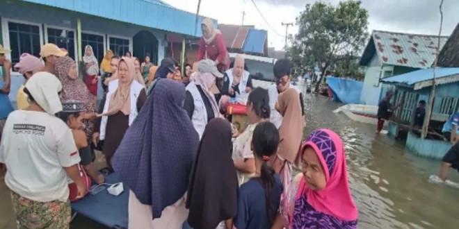 Pelayanan kesehatan yang diberikan meliputi pemeriksaan tekanan darah, kolesterol, dan asam urat, konsultasi medis, serta pembagian obat-obatan, khususnya salep untuk menangani gangguan kulit yang kerap muncul akibat genangan air banjir. Selain itu, perhatian juga diarahkan pada kelompok rentan melalui pembagian biskuit tinggi protein kepada ratusan balita dan ibu hamil sebagai langkah pencegahan stunting.