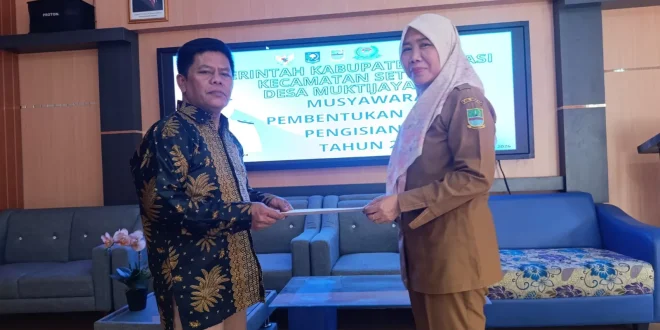 BEKASI, DESA – NUSANTARA: Pemerintah Desa Muktijaya, Kecamatan Setu, Kabupaten Bekasi, resmi memulai tahapan pengisian keanggotaan Badan Permusyawaratan Desa (BPD) dengan menetapkan panitia pemilihan. Penetapan tersebut dilaksanakan melalui musyawarah desa yang digelar di Aula Kantor Desa Muktijaya.