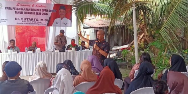 DELI, SERDANG DESA – NUSANTARA: Wakil Ketua DPRD Sumatera Utara dari Fraksi PDI Perjuangan, Dr. Sutarto, M.Si, melaksanakan kegiatan Reses II Tahun Sidang II 2025–2026 di Desa Ramunia II, Kecamatan Pantai Labu, Kabupaten Deli Serdang. Kegiatan yang digelar di halaman PAUD Bintang Mas, Dusun II tersebut menjadi ruang dialog langsung antara wakil rakyat dan masyarakat desa.