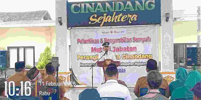 MOJOKERTO, DESA – NUSANTARA: Pemerintah Desa Cinandang, Kecamatan Dawarblandong, Kabupaten Mojokerto, melaksanakan pelantikan dan pengambilan sumpah jabatan dalam rangka mutasi perangkat desa sebagai bagian dari upaya penguatan struktur organisasi dan peningkatan kualitas pelayanan publik. Kegiatan tersebut digelar di Pendopo Balai Desa Cinandang pada “Rabu, 11 Februari 2026”.