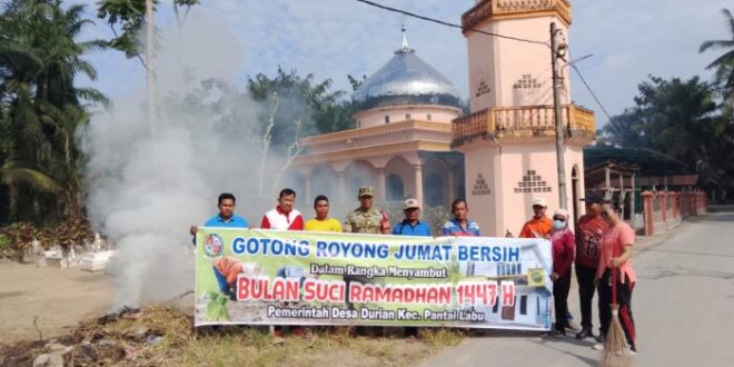Kegiatan tersebut berlangsung di Dusun II, Desa Durian, Kecamatan Pantai Labu, pada “Jumat, 13 Februari 2026”. Warga bersama aparatur desa membersihkan masjid dan area pemakaman muslim setempat sebagai bagian dari persiapan menyambut bulan suci Ramadan.