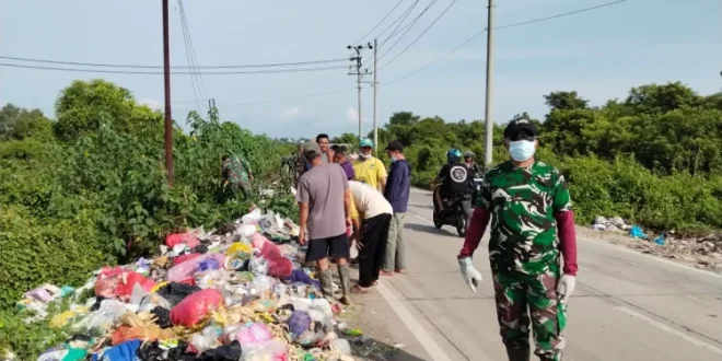 MAROS, DESA – NUSANTARA:   Semangat gotong royong mewarnai wilayah perbatasan Desa Pattontongan dan Desa Baji Mangai, Kecamatan Mandai, Kabupaten Maros, pada “Senin, 16 Februari 2026”. Personel Koramil 04/Mandai bersama jajaran Kodim 1422/Maros, pemerintah desa, serta masyarakat menggelar aksi bersih-bersih di sepanjang jalan poros yang selama ini kerap dipenuhi sampah.