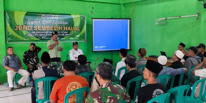 BREBES, DESA – NUSANTARA: Pengurus Dewan Pimpinan Daerah (DPD) Juru Sembelih Halal (JULEHA) Kabupaten Brebes bersama Kodim 0713/Brebes menggelar kegiatan syiar dan edukasi penyembelihan halal di Aula Balai Desa Cikuya, Kecamatan Banjarharjo, pada “Senin, 16 Februari 2026”. Kegiatan ini menjadi bagian dari program nonfisik TNI Manunggal Membangun Desa (TMMD) Reguler ke-127 Tahun Anggaran 2026.