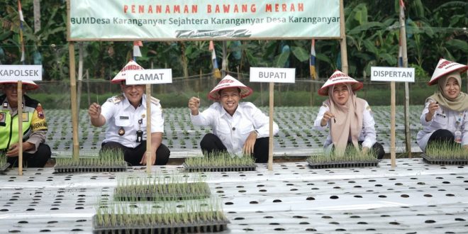 CILACAP, DESA – NUSANTARA: Bupati Cilacap Syamsul Auliya Rachman mendorong Desa Karanganyar, Kecamatan Adipala, menjadi sentra penyedia sayuran untuk memenuhi kebutuhan wilayah Kabupaten Cilacap. Dorongan tersebut disampaikan saat kegiatan penanaman bawang merah yang digagas Bumdesa Karanganyar Sejahtera di desa setempat pada “Rabu, 18 Februari 2026”.