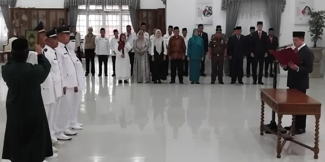 SUMEDANG, DESA – NUSANTARA: Pemerintah Kabupaten Sumedang menuntaskan proses Pergantian Antar Waktu (PAW) kepala desa melalui pelantikan empat kepala desa hasil pemilihan. Prosesi pelantikan dipimpin langsung oleh Bupati Sumedang, Dony Ahmad Munir, di Gedung Negara.
