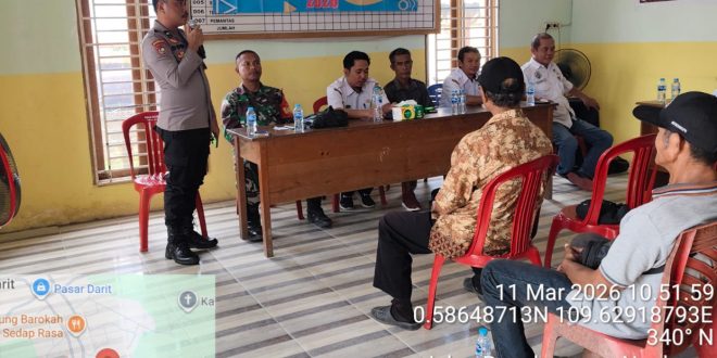MAYUKE, DESA – NUSANTARA: Bhabinkamtibmas Polsek Menyuke menghadiri kegiatan Musyawarah Desa terkait penetapan Keluarga Penerima Manfaat (KPM) Bantuan Langsung Tunai Dana Desa (BLT-DD) serta penetapan Anggaran Pendapatan dan Belanja Desa (APBDes) Tahun 2026. Kegiatan tersebut berlangsung di Balai Desa Darit pada “Rabu, 11 Maret 2026.”