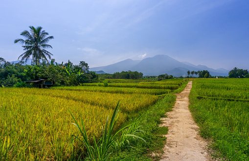Indonesia's natural scenery with beautiful village roads and rice fields