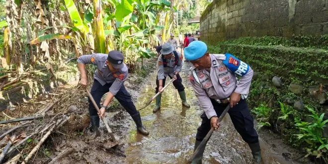 JEMBRANA – Upaya pemulihan pascabanjir di Kecamatan Mendoyo, Kabupaten Jembrana, Bali, dilakukan melalui kerja bakti gabungan yang melibatkan warga dan sejumlah instansi, Senin (6/4/2026), dengan fokus membersihkan lumpur yang masih menutupi permukiman dan akses jalan.