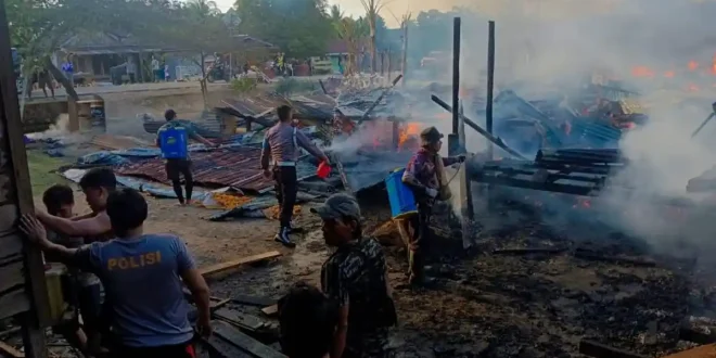 TANJUNG SELOR – Kebakaran yang diduga dipicu korsleting listrik menghanguskan lima unit rumah warga di Desa Pimping, Kecamatan Tanjung Palas Utara, Kabupaten Bulungan, Kalimantan Utara, Selasa (7/4/2026) sore. Peristiwa ini terjadi di kawasan Sungai Uma dan menyebabkan kerugian material besar meski tidak menimbulkan korban jiwa.
