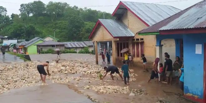 “Banyak perabot rumah tangga rusak, beras dan bahan makanan lain terhanyut banjir. Aktifitas jalan utama di desa lumpuh dan halaman kampung tertumpuk material,” ujar Robertus.
