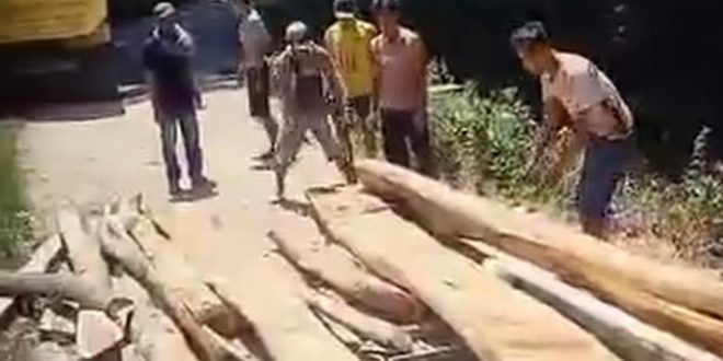 Warga bersama para pengemudi lokal kemudian berinisiatif memasang material kayu berukuran besar untuk membuat konstruksi darurat agar kendaraan roda empat kembali bisa melewati jalur tersebut. Upaya ini dilakukan secara kolektif di lapangan tanpa menunggu proyek perbaikan resmi.