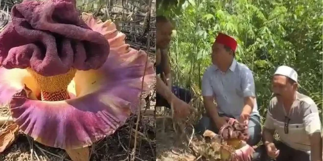 Kemunculan tanaman dengan nama latin Amorphophallus paeoniifolius pada Jumat (17/4/2026) tersebut sontak menarik perhatian warga dan pengunjung. Tanaman herba berumbi besar dengan aroma khas menyengat itu memicu rasa penasaran, sehingga banyak warga berdatangan untuk melihat langsung dari dekat.