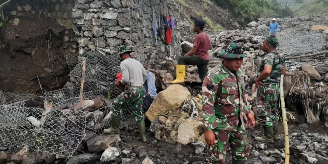 BREBES – Upaya mitigasi bencana di wilayah pedesaan terus diperkuat melalui pembangunan infrastruktur penahan longsor dan banjir dalam program TNI Manunggal Membangun Desa (TMMD) Sengkuyung Tahap II Tahun 2026 yang dilaksanakan Komando Distrik Militer (Kodim) 0713/Brebes di Desa Sridadi, Kecamatan Sirampog.