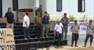 Aksi tersebut berlangsung dengan pengamanan dari aparat setempat guna menjaga situasi tetap kondusif. Warga tampak membawa spanduk dan poster yang berisi berbagai aspirasi.