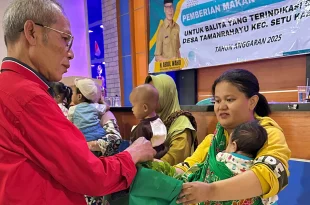 TAMANRAHAYU DESA NUSANTARA Pemerintah Desa Tamanrahayu menyalurkan Pemberian Makanan Tambahan (PMT) kepada 35 balita yang terindikasi mengalami stunting. Kegiatan tersebut dilaksanakan di aula Kantor Desa Tamanrahayu, Senin (15/12/2025). Penyerahan PMT dilakukan secara simbolis kepada perwakilan orang tua balita. Selanjutnya, paket makanan bergizi tersebut akan didistribusikan kepada seluruh anak yang telah terdata mengalami indikasi stunting di …