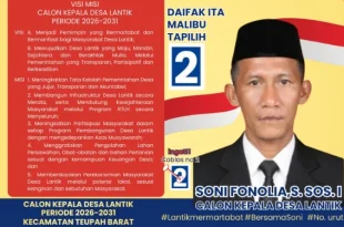 SIMEULUE, DESA – NUSANTARA: Soni Fonolia terpilih sebagai Kepala Desa Lantik, Kecamatan Teupah Barat, Kabupaten Simeulue, Aceh, untuk periode 2026–2031 setelah meraih suara terbanyak pada Pemilihan Kepala Desa (Pilkades) Serentak Kabupaten Simeulue Tahun 2025 yang digelar pada Sabtu (20/12/2025). Dalam kontestasi tersebut, Soni Fonolia unggul dari empat kandidat lainnya berdasarkan …