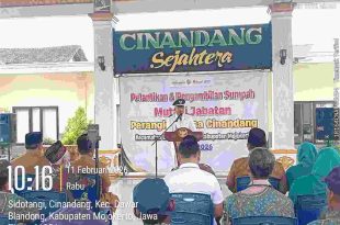 MOJOKERTO, DESA – NUSANTARA: Pemerintah Desa Cinandang, Kecamatan Dawarblandong, Kabupaten Mojokerto, melaksanakan pelantikan dan pengambilan sumpah jabatan dalam rangka mutasi perangkat desa sebagai bagian dari upaya penguatan struktur organisasi dan peningkatan kualitas pelayanan publik. Kegiatan tersebut digelar di Pendopo Balai Desa Cinandang pada “Rabu, 11 Februari 2026”. Acara berlangsung khidmat …