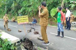 TASIKMALAYA DESA NUSANTARA Ruas Jalan Raya Sindangreret Cidadap, tepatnya di Kampung Kujang, Desa Kujang, Kecamatan Karangnunggal, Kabupaten Tasikmalaya, mengalami keretakan dan pergeseran tanah cukup parah setelah diguyur hujan deras sejak Minggu (12/10/2025) malam hingga Senin (13/10/2025) pagi. Keretakan jalan terjadi sepanjang kurang lebih 20 meter dengan kedalaman antara 30 hingga …