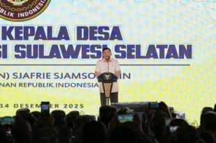 GOWA, DESA – NUSANTARA: Menteri Pertahanan Republik Indonesia, Sjafrie Sjamsoeddin, menjadi pembicara dalam Jambore Kepala Desa Tingkat Provinsi Sulawesi Selatan yang digelar di Markas Komando Rindam XIV Hasanuddin, Kabupaten Gowa, Minggu (14/12/2025). Jambore kepala desa tersebut berlangsung selama tiga hari, 12–14 Desember 2025, dan diikuti oleh para kepala desa dari berbagai kabupaten dan kota di …