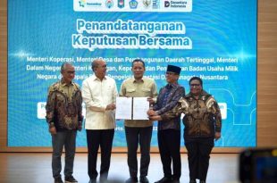 JAKARTA DESA NUSANTARA Pemerintah pusat resmi memperkuat komitmen dalam mengakselerasi pembangunan koperasi desa dengan menandatangani Surat Keputusan Bersama (SKB) Percepatan Pembangunan Fisik dan Operasional Gerai serta Pergudangan Koperasi Desa/Kelurahan (Kopdes/Kel) Merah Putih. Penandatanganan SKB yang berlangsung pada Kamis (09/10/2025) di Gedung Kementerian Koperasi dan UKM di Jakarta ini dilakukan oleh …