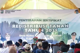 LUMAJANG DESA NUSANTARA Sebanyak 317 warga Desa Bades, Kecamatan Pasirian, Kabupaten Lumajang, akhirnya menerima kepastian hukum atas kepemilikan lahan mereka melalui penyerahan sertifikat Program Redistribusi Tanah Tahun 2025. Sertifikat tersebut diserahkan langsung oleh Wakil Bupati Lumajang, Yudha Adji Kusuma, kepada masyarakat setempat. Penyerahan sertifikat ini menjadi bagian dari upaya pemerintah …